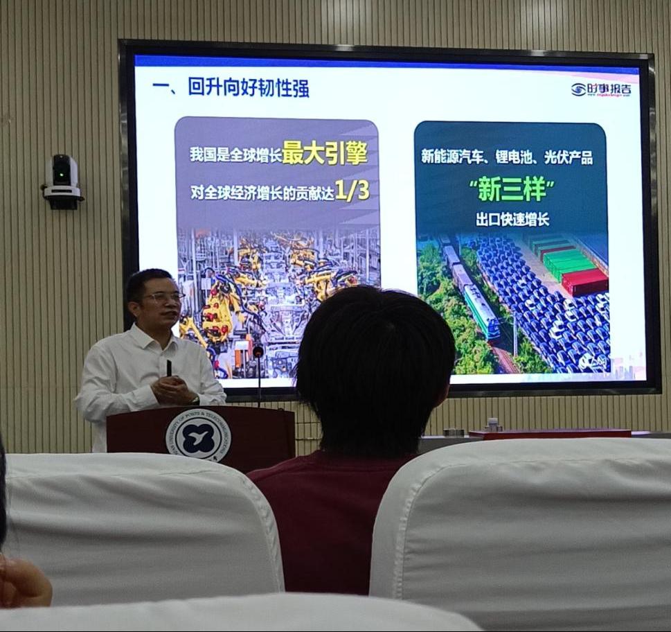 7月2日下午,副校长楼旭明给信管2201、物流2201、物流2202、邮管2201班上题为《中国经济高质量发展扎实推进》的形势与政策课。