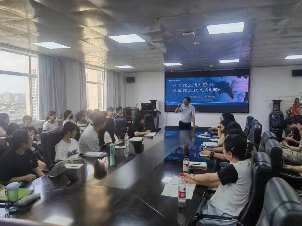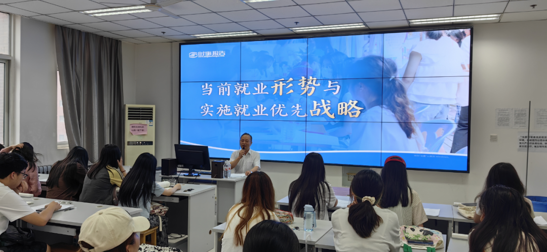 6月26日下午,校党委副书记郑大远以“当前就业形势与实施就业优先战略”为主题,为经济与管理学院师生讲授形势与政策课。