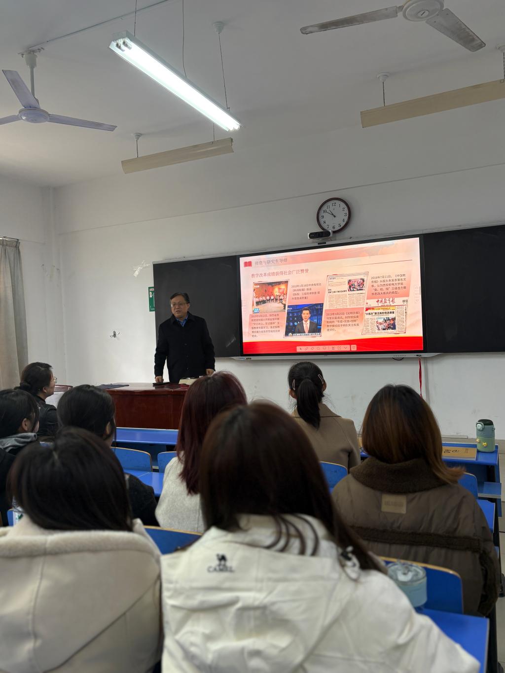 在宝鸡文理学院高新校区,学院举办研究生招生宣讲会。袁文伟向参会学生介绍了我校马克思主义学院发展建设情况,展示了学院学术积淀、办学特色与发展前景。青年教师李卓、2025 级研究生王佳怡分别结合教学实践与在校学习经历,围绕专业学习、科研实践、成长发展等内容进行了交流分享。