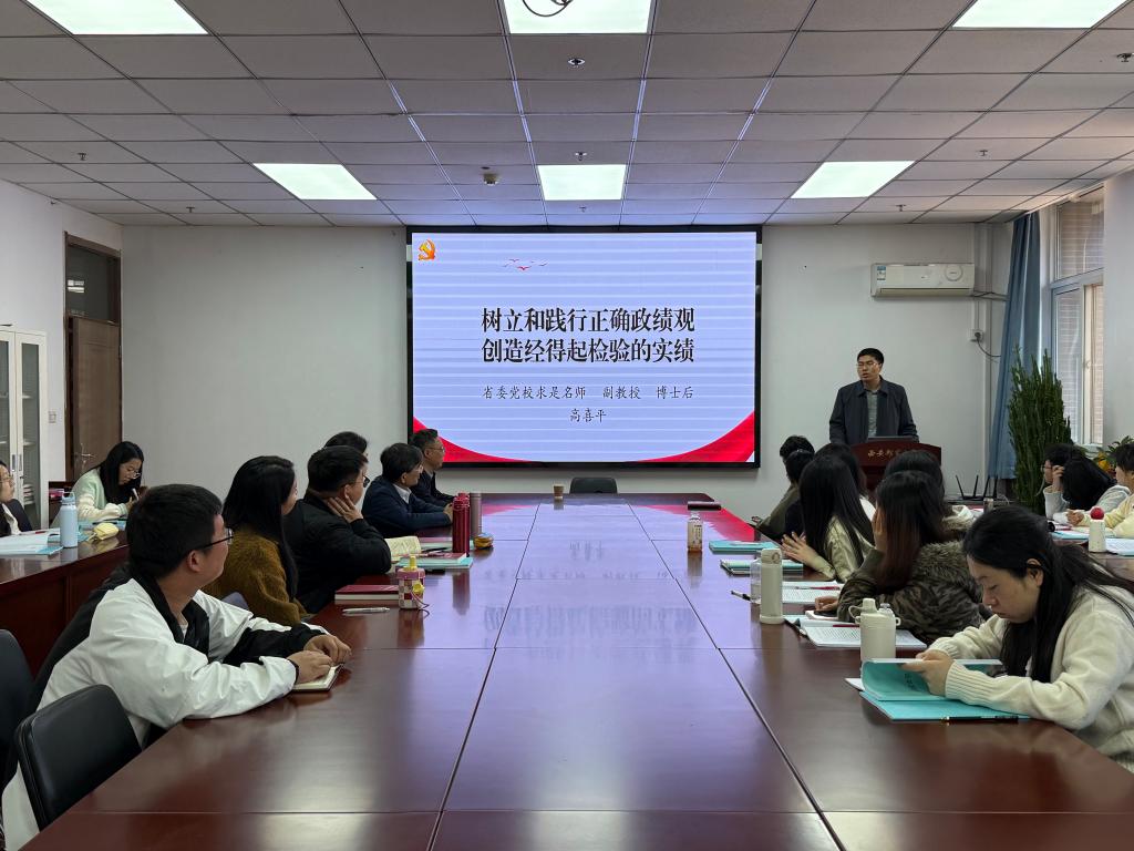 3月31日,马克思主义学院在会议室举办“树立和践行正确政绩观,创造经得起检验的实绩”主题讲座,邀请学院往届毕业生、省委党校求是名师、副教授、博士后高喜平主讲。学院思政课教师、研究生代表等参加活动。